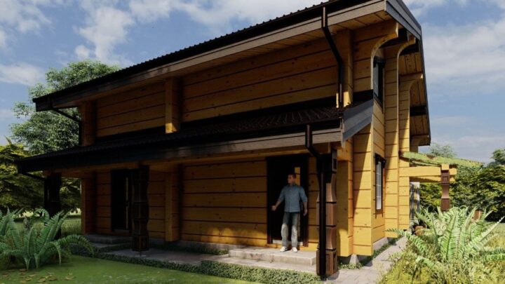 Дом для постоянного проживания площадью 230 м². Пятикомнатный дом с четырьмя спальнями обеспечит комфортное проживание членам большой семьи разных возрастов. Просторная кухня-столовая и гостиная с вторым светом позволит собираться большой компанией, при этом чувствуя себя свободно и уютно. Архитектура дома за счет своего лаконичного вида делает строительство экономически выгодным, плюс ко всему подчеркивает вкус и рациональность владельца. Соотношение площади к затратам — оптимальное, следовательно уменьшается стоимость строительства за 1 м² полезной площади. Конструктив стен выполнен по норвежской технологии из лафета толщиной 250 мм и высотой 400-460 мм.