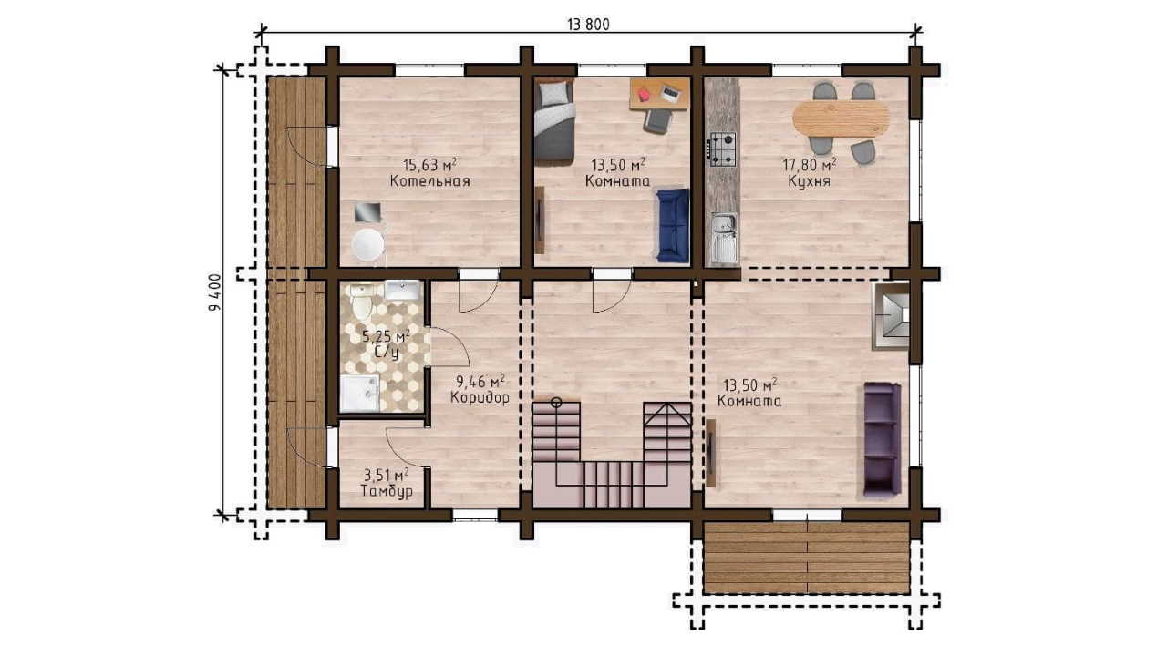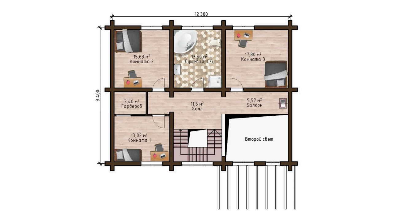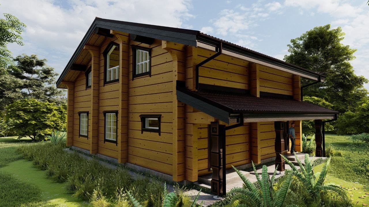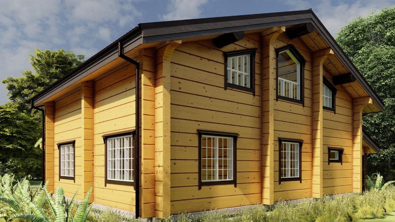 Дом для постоянного проживания площадью 230 м². Пятикомнатный дом с четырьмя спальнями обеспечит комфортное проживание членам большой семьи разных возрастов. Просторная кухня-столовая и гостиная с вторым светом позволит собираться большой компанией, при этом чувствуя себя свободно и уютно. Архитектура дома за счет своего лаконичного вида делает строительство экономически выгодным, плюс ко всему подчеркивает вкус и рациональность владельца. Соотношение площади к затратам — оптимальное, следовательно уменьшается стоимость строительства за 1 м² полезной площади. Конструктив стен выполнен по норвежской технологии из лафета толщиной 250 мм и высотой 400-460 мм.