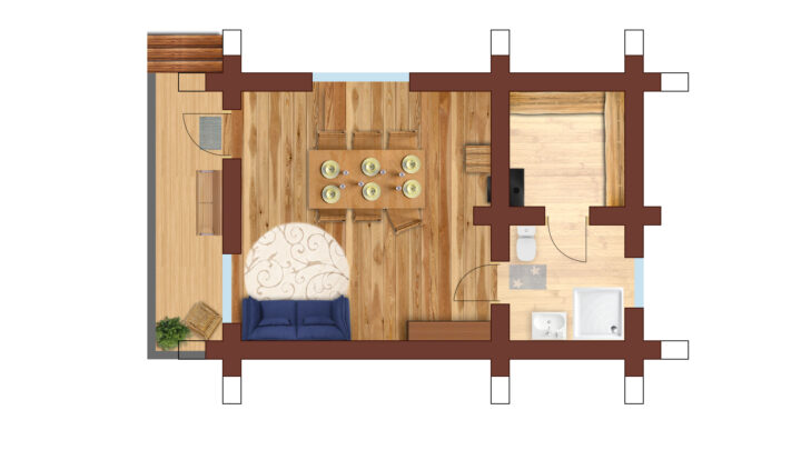 Также есть небольшая терраса, где можно отдыхать теплыми летними вечерами.
