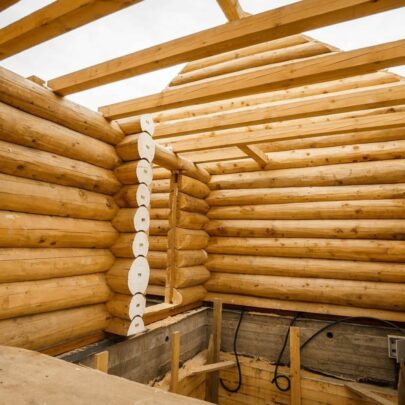 Баня «Маккензи» общей площадью 66 м2. Построена по канадской технологии рубки из сибирского кедра.