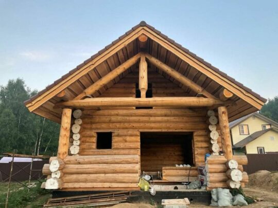 Срок изготовления сруба 2,5 месяца с учетом заготовки материалов. Доставка деталей сруба произведена за 4 дня, сборка – за 3 дня.