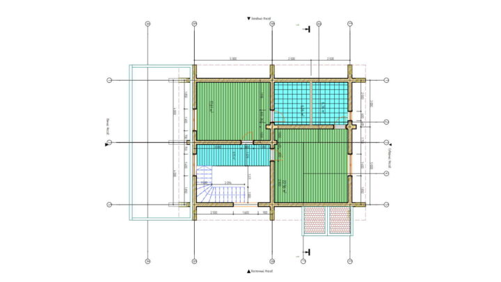 Дом двухэтажный, большую часть первого этажа занимает гостиная площадью 48 м2. На каждом этаже есть раздельный сан. узел. На первом этаже расположены три изолированные комнаты. На втором этаже кроме раздельного сан узла находятся две просторные комнаты площадью 17,81 м2 и 22,56 м2. В гостиной есть большое панорамное окно.