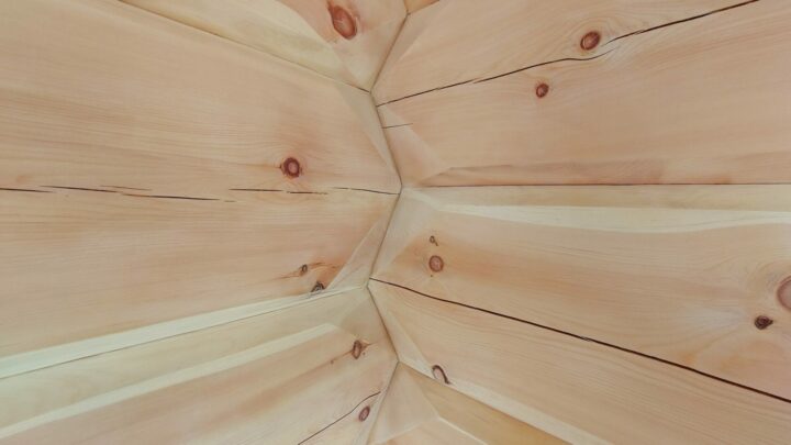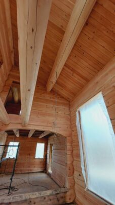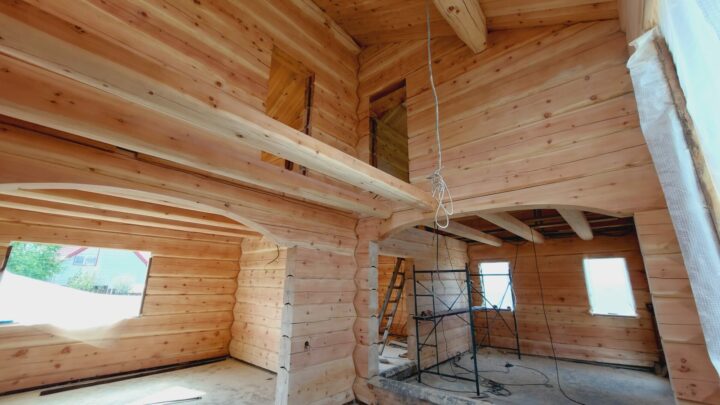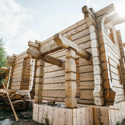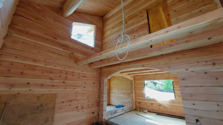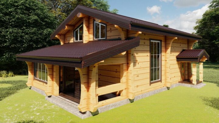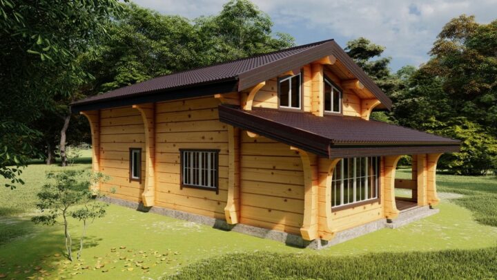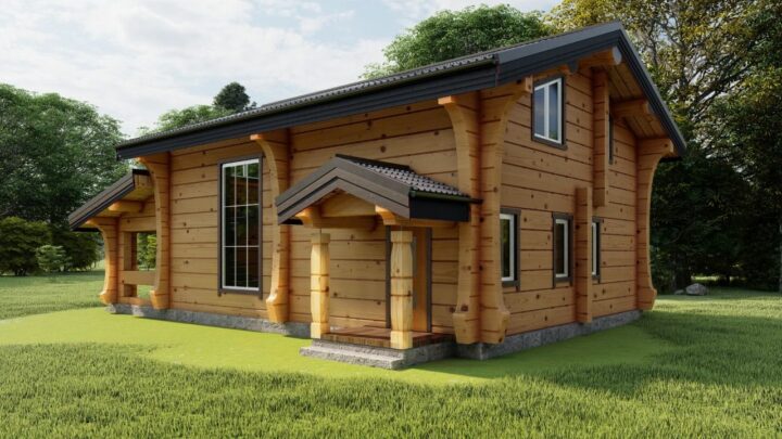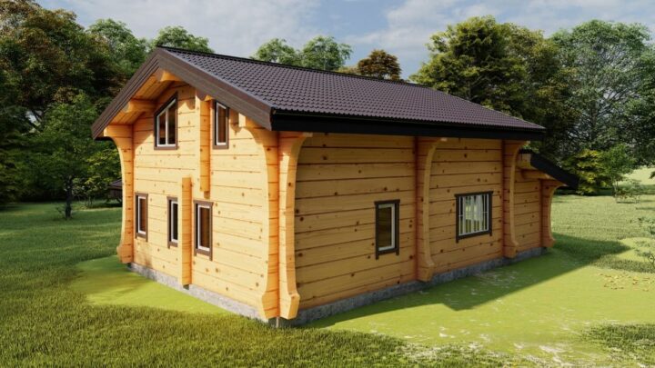 Деревянный дом по проекту «Nordlys» выполнен из лафета по норвежской технологии рубки. Материал – сибирский кедр. Общая площадь дома 185 м2.