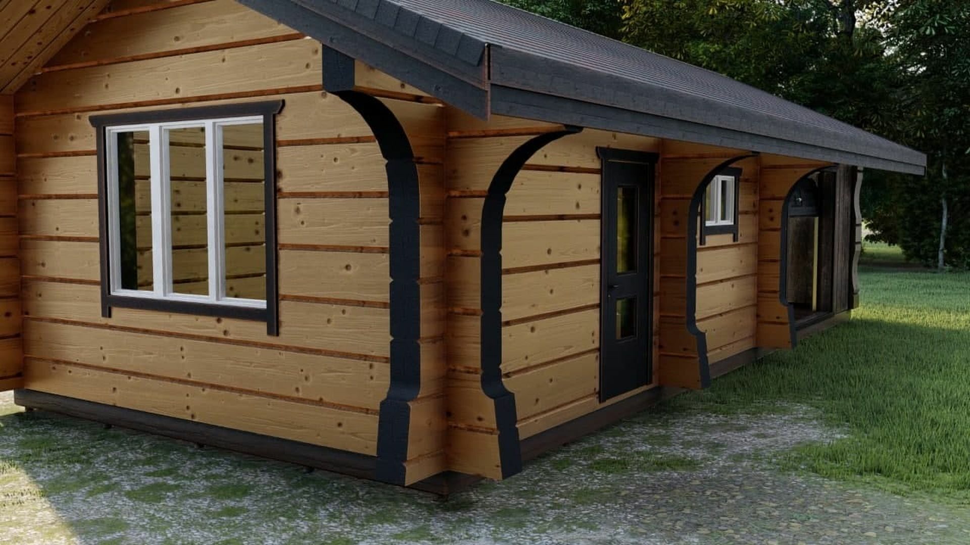 Имеет нестандартную планировку: под одной кровлей с баней располагается гараж на одну машину. Общая площадь составляет 42,5 м2.