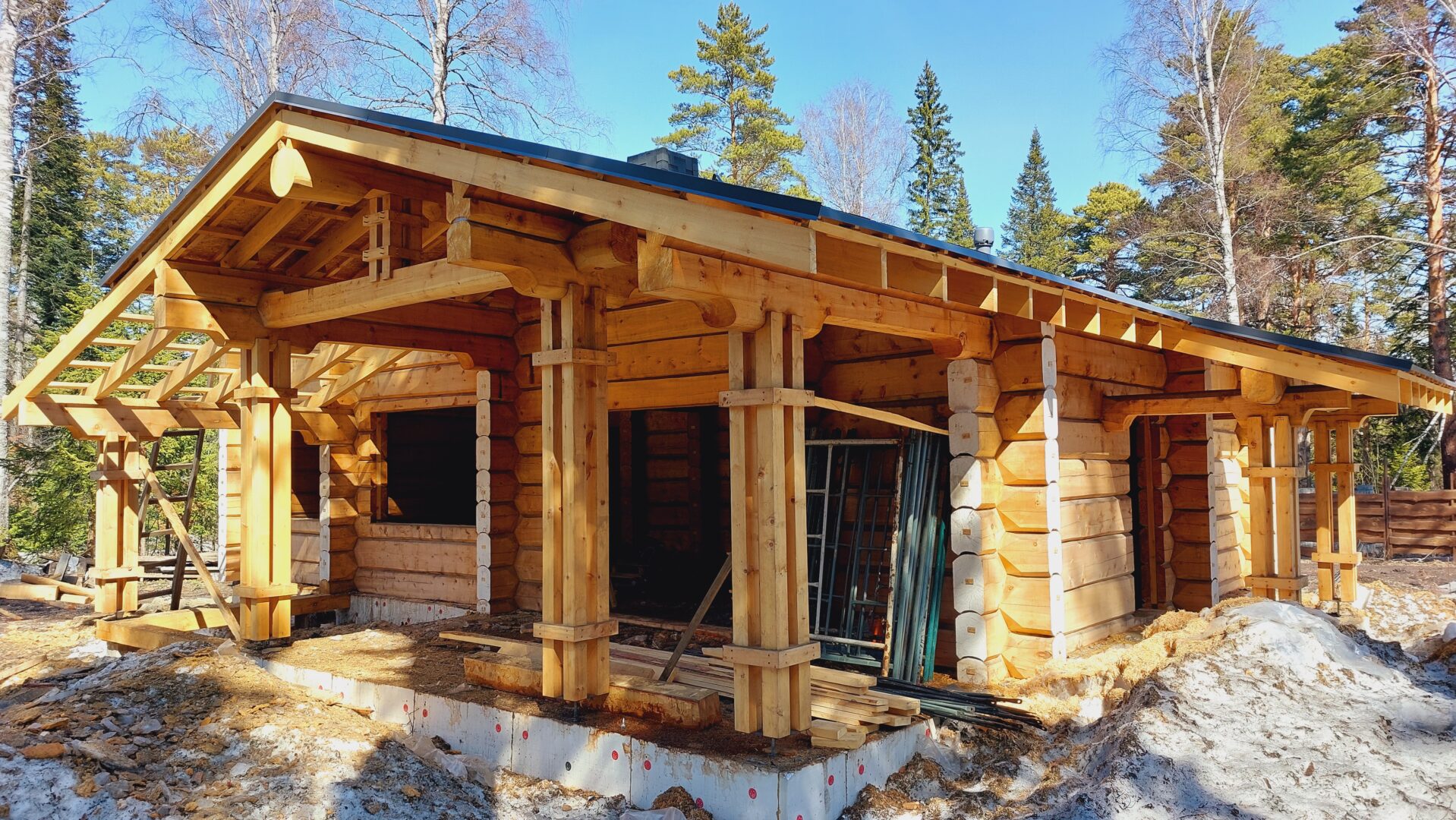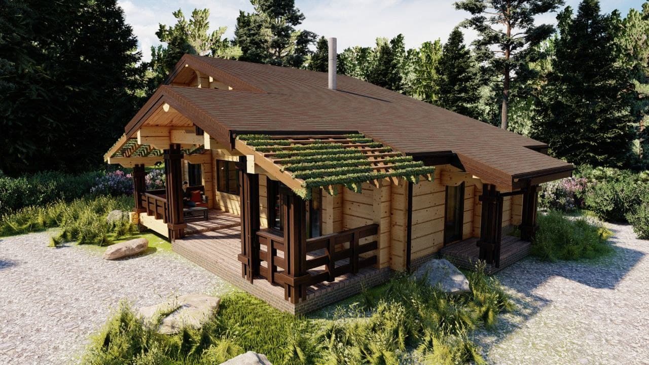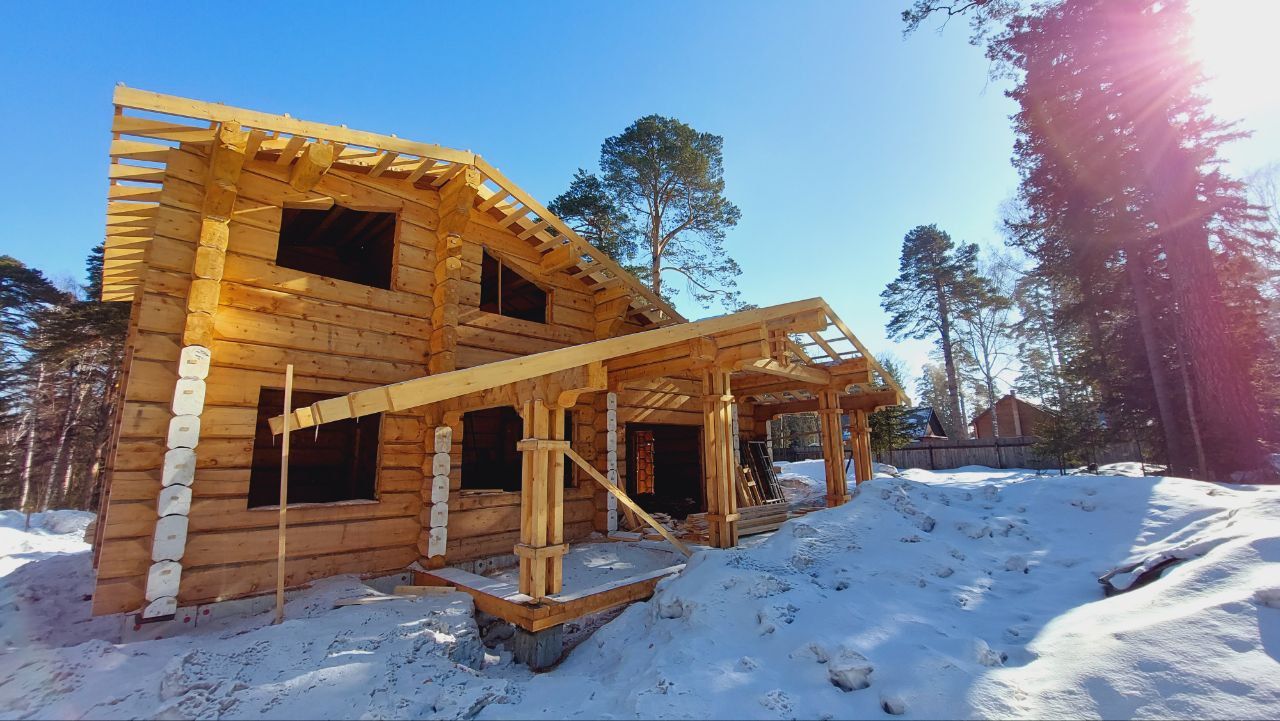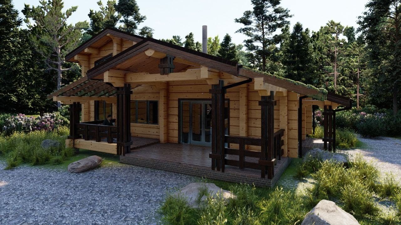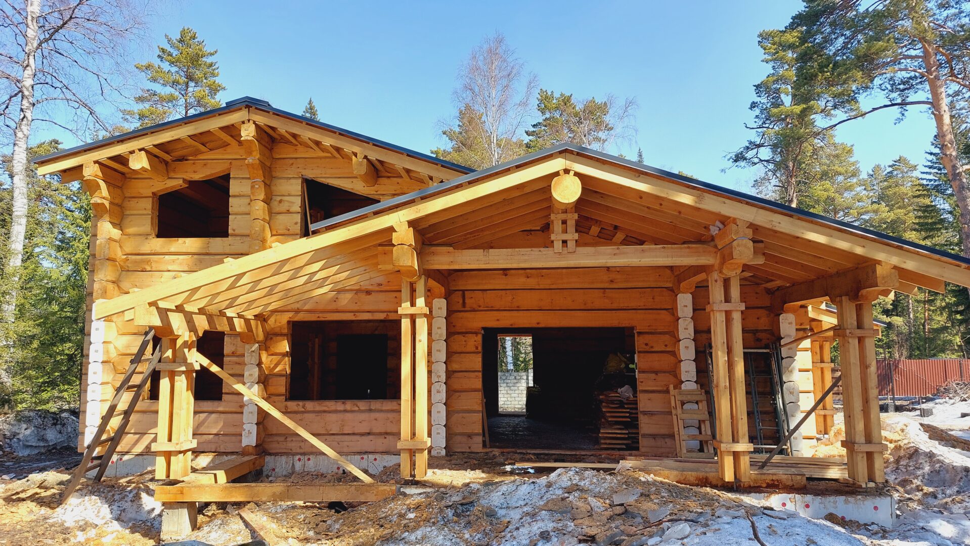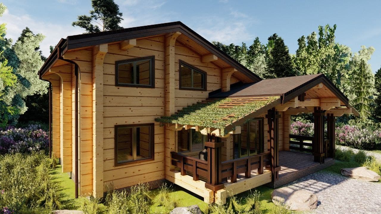 Загородный дом общей площадью 150 м². Разработан индивидуально учитывая все пожелания заказчика. Зонирование в планировке позволяет разместить всю необходимую мебель, создавая этим особую атмосферу и неповторимость. Наличие второго света над кухней и гостиной наполняет помещения дополнительным воздухом, обеспечивая комфортное проживание в любое время года. Предусмотрено большое панорамное окно с дополнительным выходом на веранду с видом на сад. Конструктив сруба изготовлен по норвежской технологии рубки из лафета (двухкантного бруса), высота в вершинах составляет 400-440 мм, толщина стен 250 мм.